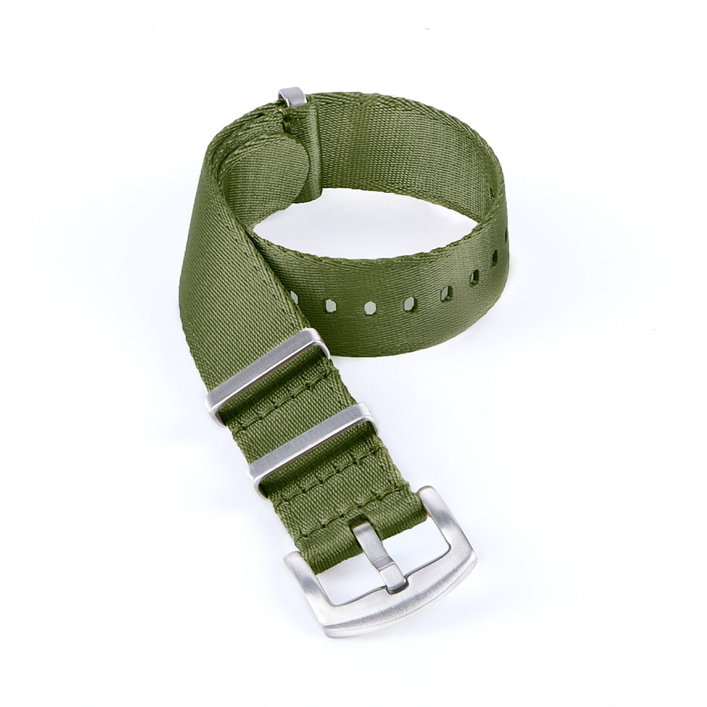 सीटबेल्ट नाटो श्रृंखला का परिचय, अभी तक का सबसे आरामदायक नाटो घड़ी का पट्टा। सीटबेल्ट नाटो स्ट्रैप में एक पतला और नरम घड़ी बैंड सामग्री है और यह आपकी कलाई के चारों ओर बेहतर महसूस करता है क्योंकि यह एक अविश्वसनीय रूप से ठीक उच्च घनत्व वाले नायलॉन बुनाई से बना है। फर्क महसूस करो!