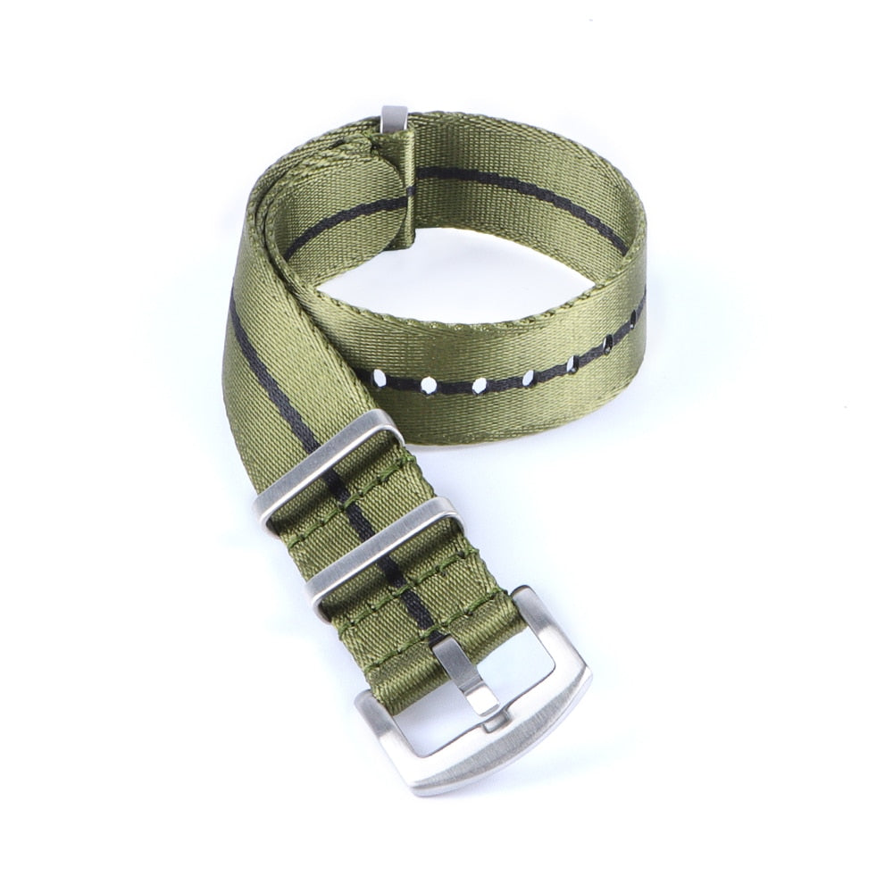 सीटबेल्ट नाटो श्रृंखला का परिचय, अभी तक का सबसे आरामदायक नाटो घड़ी का पट्टा। सीटबेल्ट नाटो स्ट्रैप में एक पतला और नरम घड़ी बैंड सामग्री है और यह आपकी कलाई के चारों ओर बेहतर महसूस करता है क्योंकि यह एक अविश्वसनीय रूप से ठीक उच्च घनत्व वाले नायलॉन बुनाई से बना है। फर्क महसूस करो!