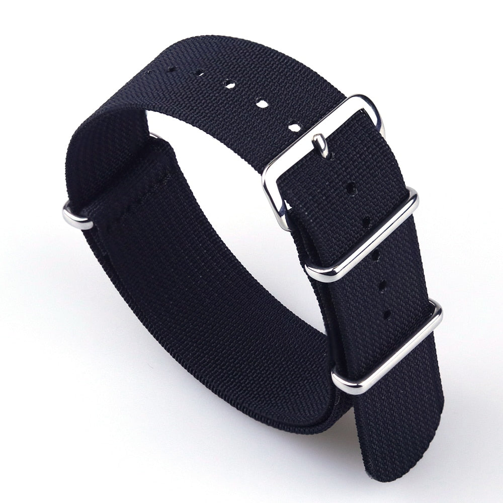 Premium quality Nylon strap featuring a unique ribbed weave that comes in a variety of colors to match any watch. Accompanied by premium brushed silver hardware that looks and feels good. This strap is entirely waterproof and can withstand some of the toughest conditions.