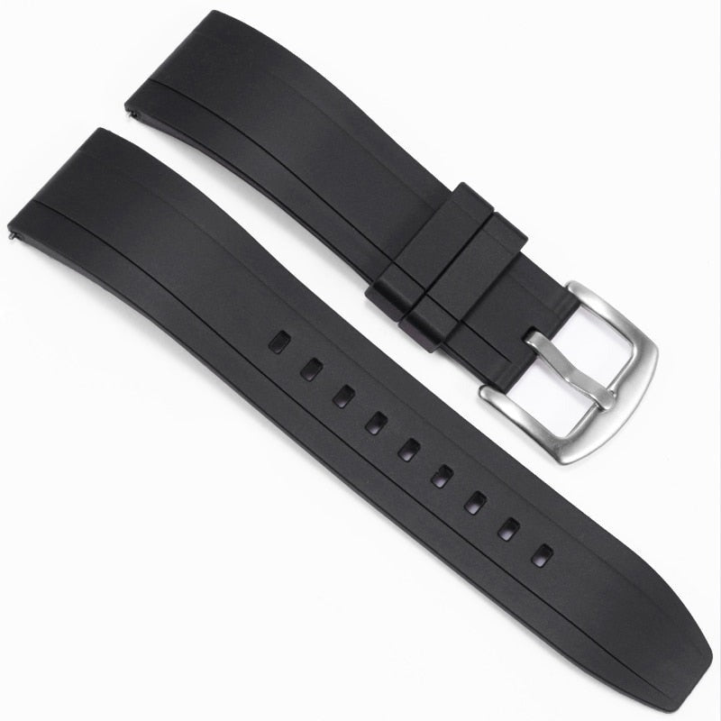 Straight End FKM Rubber Universal Dive Strap - Black / 20mm / 22mm