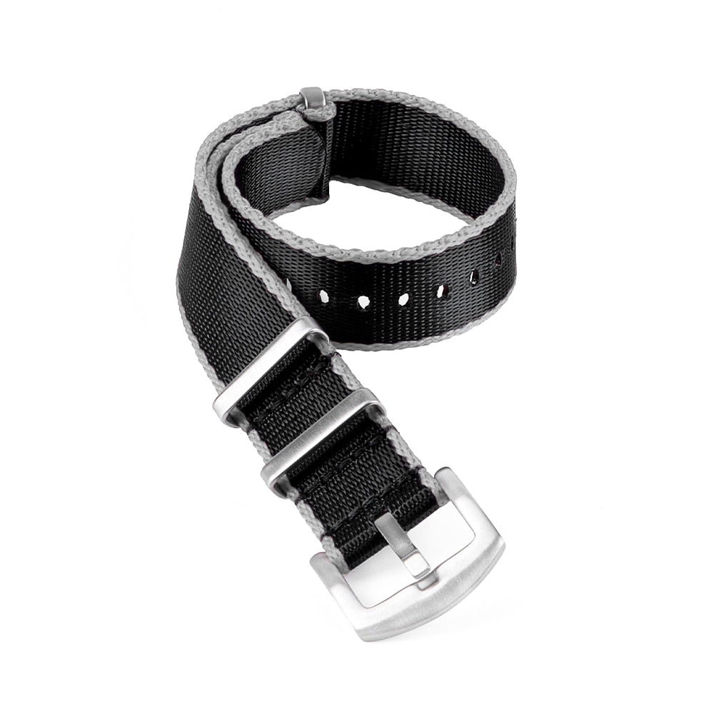 隆重推出 Seatbelt NATO 系列,這是迄今為止最舒適的 NATO 錶帶。 Seatbelt NATO 錶帶採用更薄更柔軟的錶帶材料,手腕上感覺更好,因為它是由非常精細的高密度尼龍編織而成。感到不同!